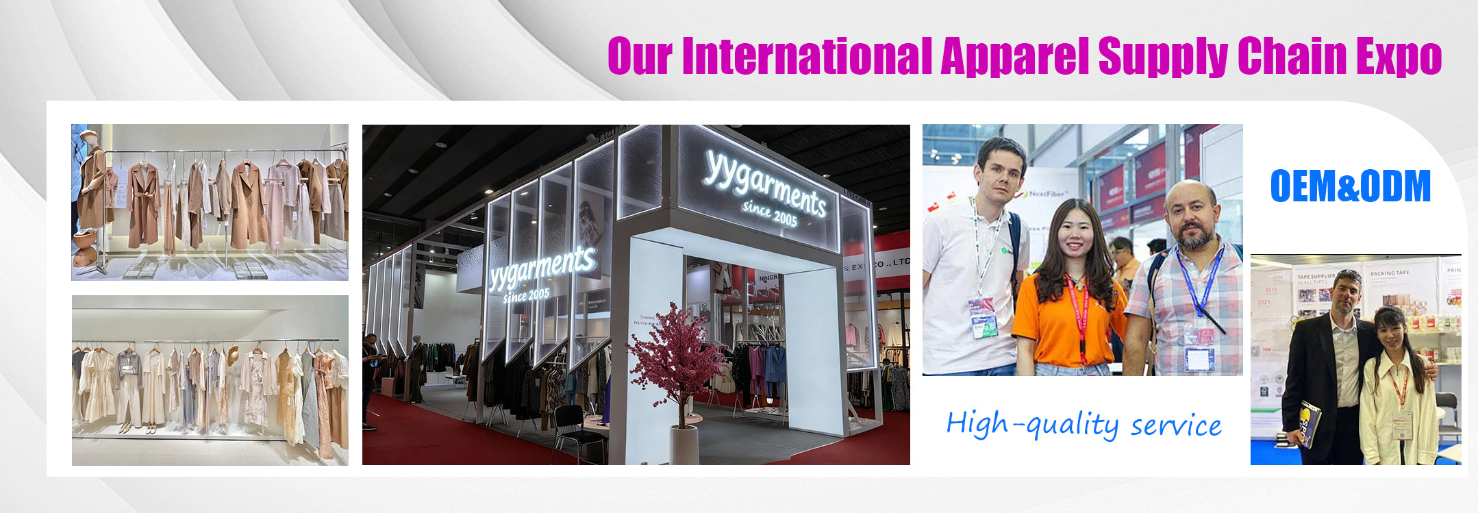 We are a professional women's clothing manufacturer! We have two large-scale factories in China. YY garments is one of our clothing brands. We boast 20 years of experience in the production of high-end women's clothing! We offer OEM and ODM services, with no minimum order quantity (NO MOQ) required.